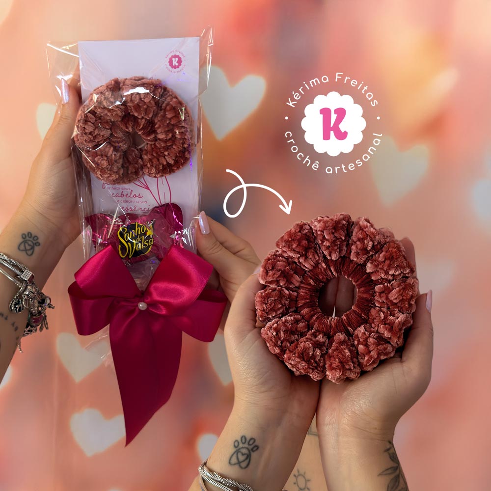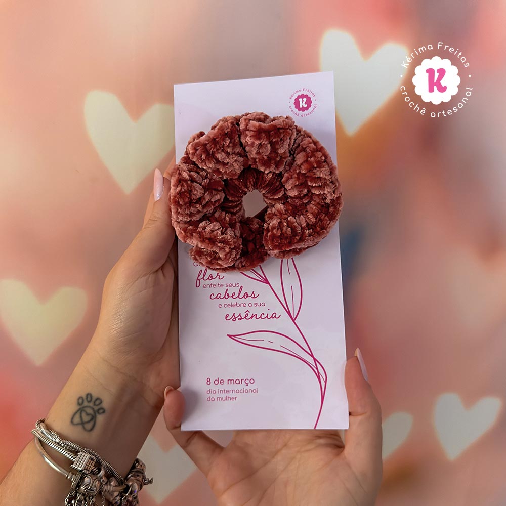 O Cartão Especial Dia da Mulher foi criado para transformar um gesto pequeno em algo memorável. No lugar da flor tradicional, uma xuxinha artesanal de crochê feita à mão, porque toda mulher merece algo que dure mais do que apenas um dia 💗