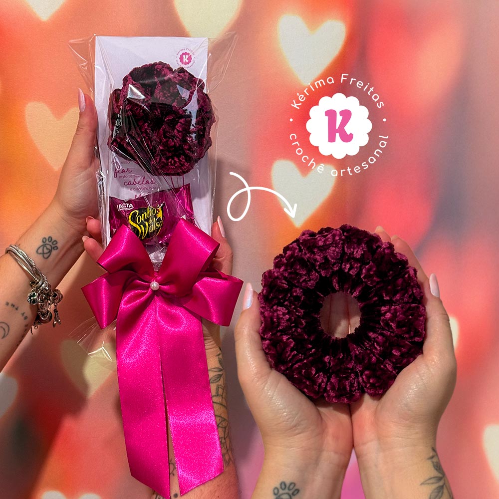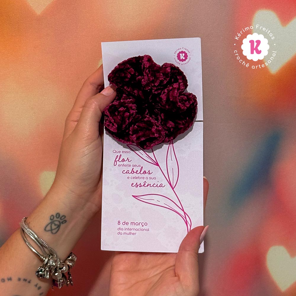O Cartão Especial Dia da Mulher foi criado para transformar um gesto pequeno em algo memorável. No lugar da flor tradicional, uma xuxinha artesanal de crochê feita à mão, porque toda mulher merece algo que dure mais do que apenas um dia 💗